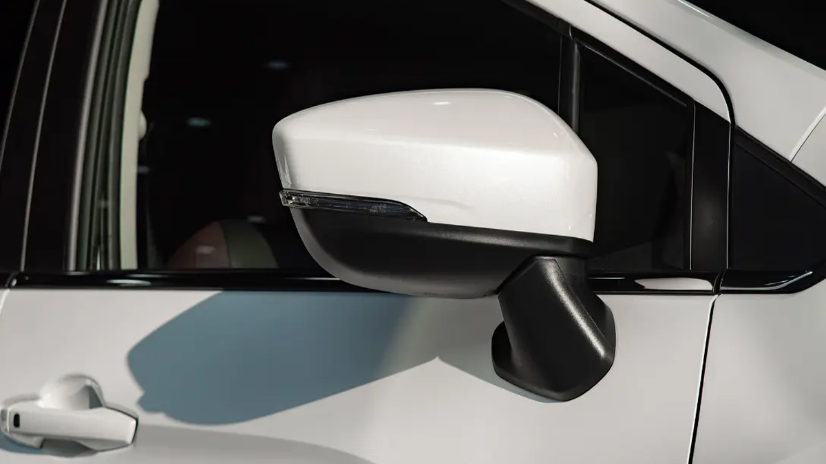 Gương chiếu hậu và tay nắm cửa mạ crom sáng bóng, tích hợp nút bấm mở khóa thông minh, mang lại sự tiện lợi cho người dùng.